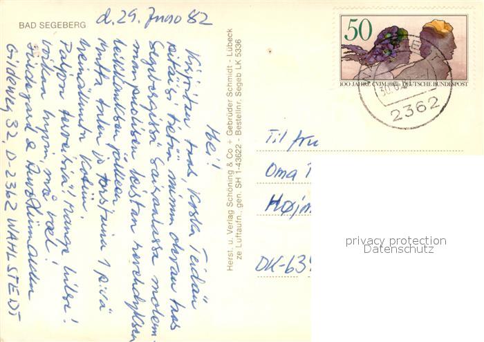 73718883 alte Postkarte Bad Segeberg Fliegeraufnahme postalisch gelaufen Erhaltung siehe scans [WerneD78] KatCode: 11110001060005
