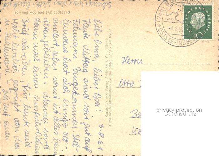 72032024 alte Postkarte Bad Segeberg Fliegeraufnahme postalisch gelaufen Erhaltung siehe scans KatCode: 11110001060005