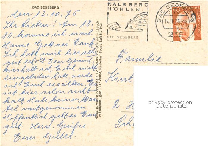 73766917 alte Postkarte Bad Segeberg Fliegeraufnahme postalisch gelaufen Erhaltung siehe scans [FriedD77] KatCode: 11110001060005