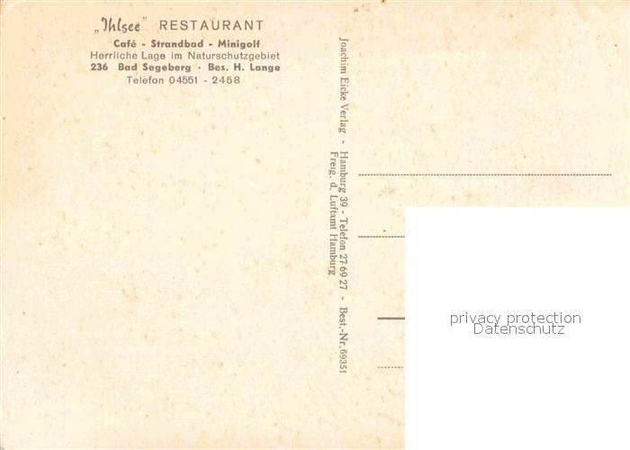72840283 Bad Segeberg Fliegeraufnahme Ihlsee Restaurant Gastraum Minigolf postalisch nicht gelaufen Erhaltung siehe scans [WerneD78] KatCode: 11110001060005