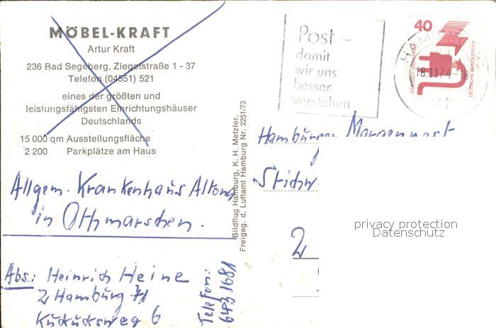 71950729 alte Postkarte Bad Segeberg Fliegeraufnahme Moebel-Kraft postalisch gelaufen Erhaltung siehe scans KatCode: 11110001060005