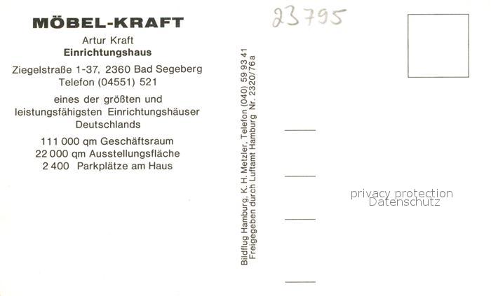 73118852 Bad Segeberg Fliegeraufnahme Moebel Kraft postalisch nicht gelaufen Erhaltung siehe scans [LiesaD40] KatCode: 11110001060005