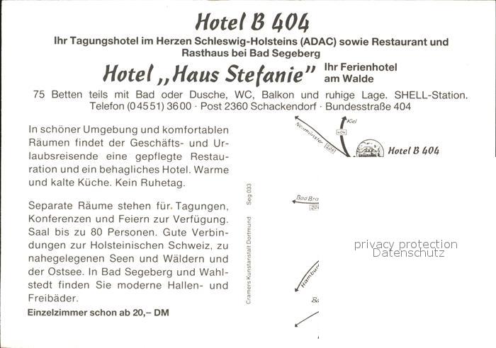 72522508 Bad Segeberg Hotel Haus Stefanie postalisch nicht gelaufen Werbekarte (keine Postkarte) Erhaltung siehe scans KatCode: 11110001060005