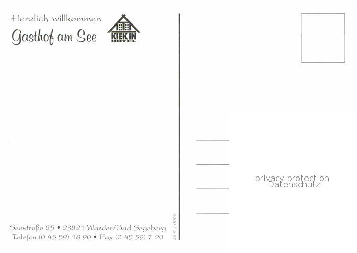 72793088 Bad Segeberg Kiek in Hotel Gasthaus am See postalisch nicht gelaufen Erhaltung siehe scans [LiesaD40] KatCode: 11110001060005