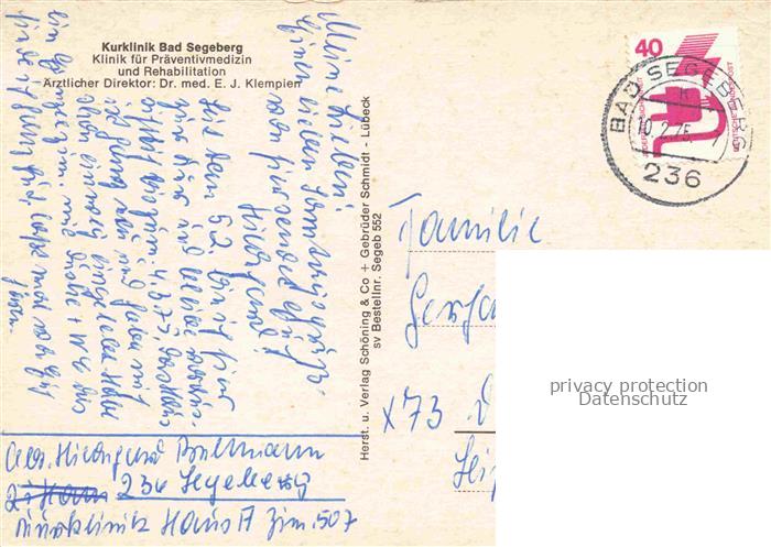 74028150 alte Postkarte Bad Segeberg Kurklinik Empfang Speisesaal Aufenthaltsraum postalisch gelaufen Erhaltung siehe scans [FriedD77] KatCode: 11110001060005
