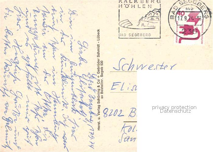 72846468 alte Postkarte Bad Segeberg Kurzentrum Seepromenade Kirche Kalkberg Stadion postalisch gelaufen Erhaltung siehe scans [KathaD81] KatCode: 11110001060005