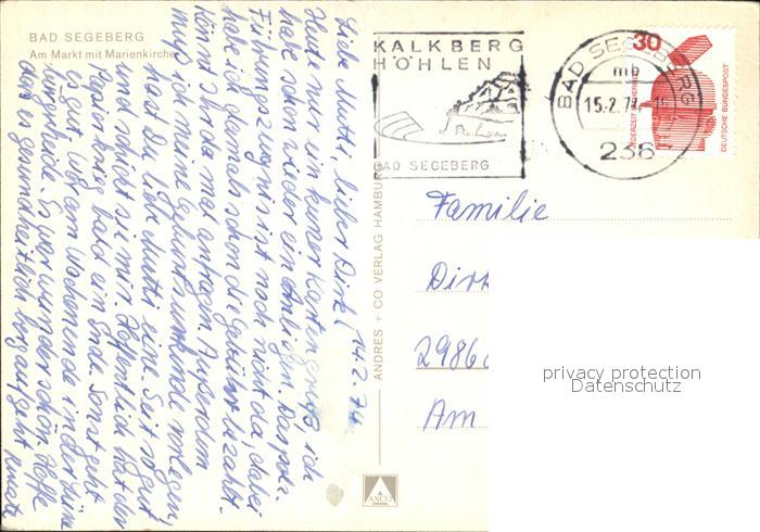 72415338 alte Postkarte Bad Segeberg Markt Marienkirche postalisch gelaufen Erhaltung siehe scans KatCode: 11110001060005