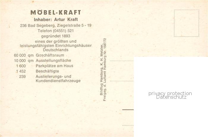 73855310 Bad Segeberg Moebel Kraft Einrichtungshaus postalisch nicht gelaufen Fliegeraufnahme Erhaltung siehe scans [FriedD77] KatCode: 11110001060005
