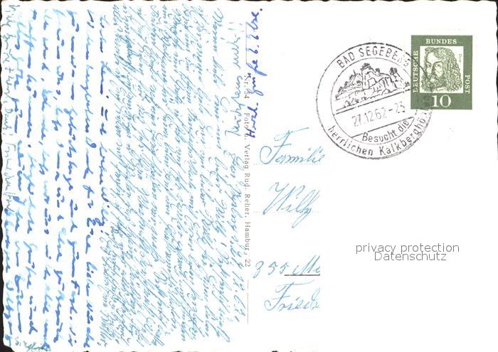 72313099 alte Postkarte Bad Segeberg Panorama Blick vom Kalkberg Saeulenhalle Kirche postalisch gelaufen Erhaltung siehe scans KatCode: 11110001060005