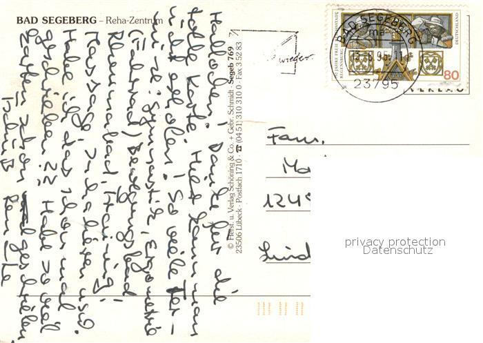 73689463 alte Postkarte Bad Segeberg Reha-Zentrum postalisch gelaufen Erhaltung siehe scans [FriedD77] KatCode: 11110001060005