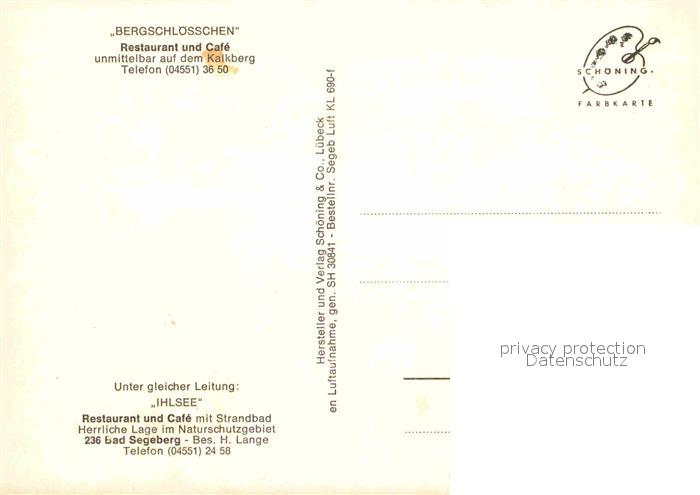 72837462 Bad Segeberg Restaurant-Cafe Bergschloesschen Fliegeraufnahme postalisch nicht gelaufen Erhaltung siehe scans [PaolaD17] KatCode: 11110001060005