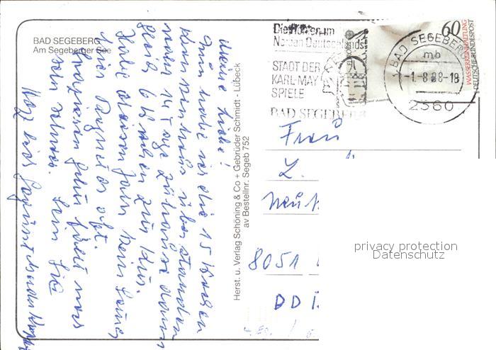 72403097 alte Postkarte Bad Segeberg Segeberger See postalisch gelaufen Erhaltung siehe scans KatCode: 11110001060005