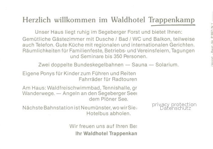 73544852 Bad Segeberg Waldhotel Restaurant Trappenkamp Kegelbahn Segeberger Forst postalisch nicht gelaufen Werbekarte (keine Postkarte) Erhaltung siehe scans [FriedD77] KatCode: 11110001060005