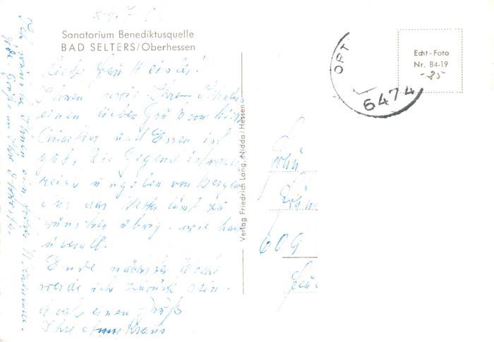 73871402 alte Postkarte Bad Selters Sanatorium Benediktusquelle postalisch gelaufen Erhaltung siehe scans [WerneD78] KatCode: 11110006440019