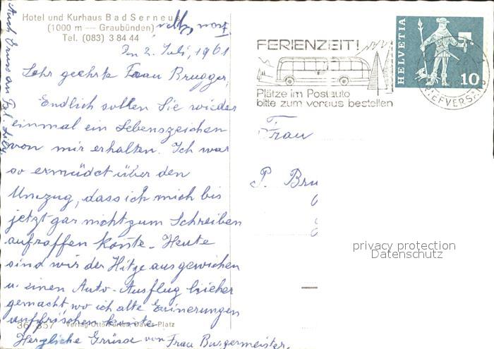 11641456 alte Postkarte Bad Serneus Hotel und Kurhaus postalisch gelaufen Erhaltung siehe scans KatCode: 11470100350370