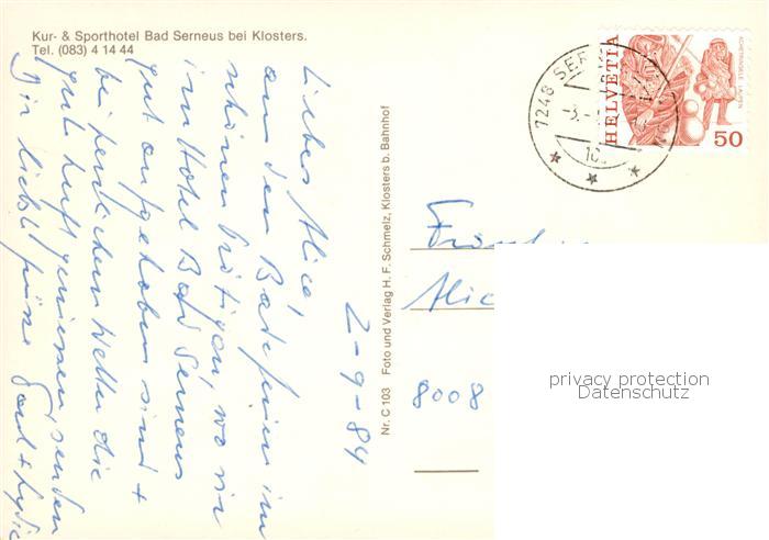 13865293 alte Postkarte Bad Serneus Kur- und Sporthotel Alpen postalisch gelaufen Erhaltung siehe scans [FriedD77] KatCode: 11470100350370