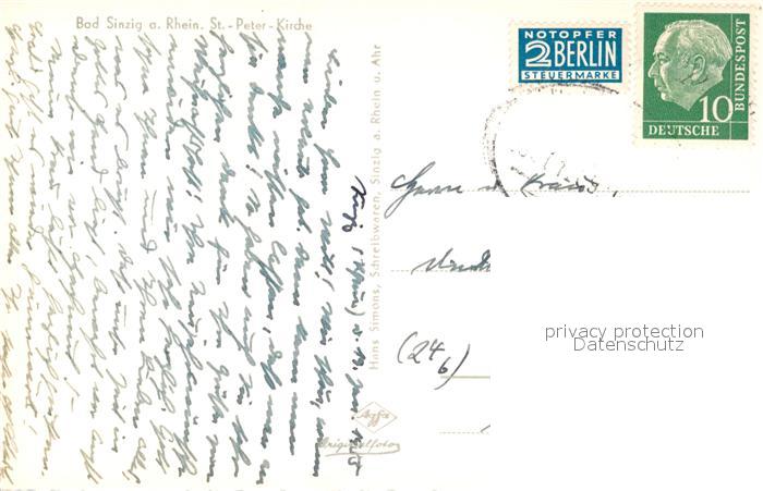 73611011 alte Postkarte Bad Sinzig Rhein St. Peter Kirche postalisch gelaufen Erhaltung siehe scans [LiesaD40] KatCode: 11110007131077
