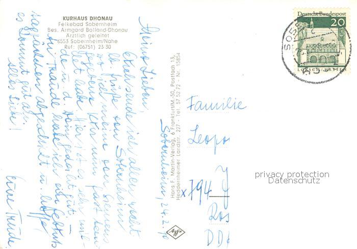 73667586 alte Postkarte Bad Sobernheim Kurhaus Dhonau Felkebad Fliegeraufnahme postalisch gelaufen Erhaltung siehe scans [FriedD77] KatCode: 11110007133501