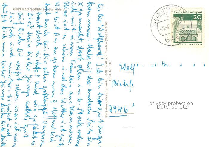 73111914 alte Postkarte Bad Soden-Salmuenster postalisch gelaufen Erhaltung siehe scans [NatalD47] KatCode: 11110006435002