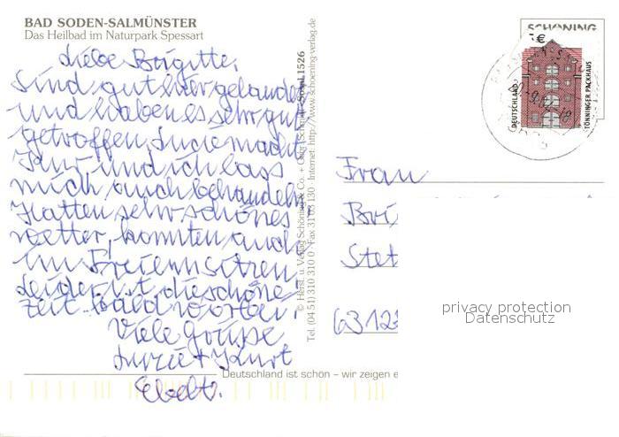73205731 alte Postkarte Bad Soden-Salmuenster postalisch gelaufen Erhaltung siehe scans [PaolaD17] KatCode: 11110006435002