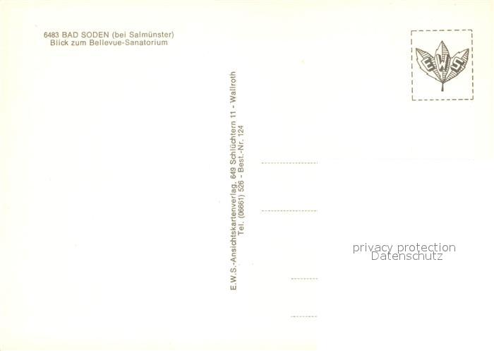 72961342 Bad Soden-Salmuenster Bellevue Sanatorium postalisch nicht gelaufen Erhaltung siehe scans [WerneD78] KatCode: 11110006435002