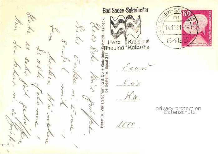 72919200 alte Postkarte Bad Soden-Salmuenster Burgruine Stolzenberg Kurklinik Bellevue Lohrey postalisch gelaufen Erhaltung siehe scans [NatalD47] KatCode: 11110006435002