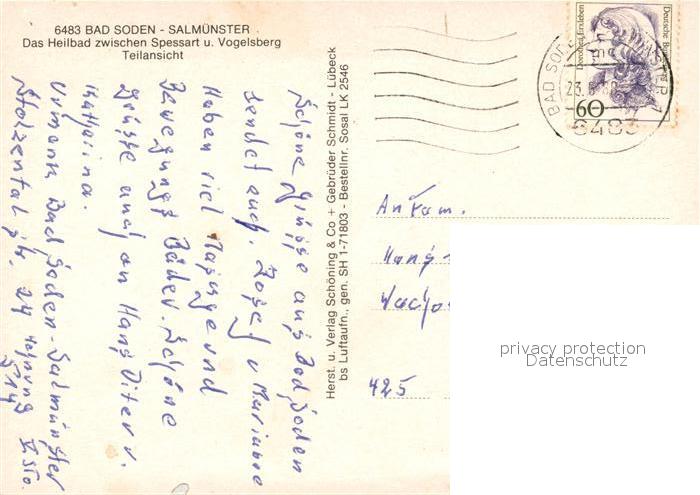 73310755 alte Postkarte Bad Soden-Salmuenster Fliegeraufnahme postalisch gelaufen Erhaltung siehe scans [NatalD47] KatCode: 11110006435002