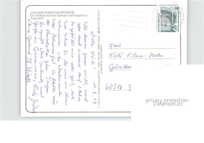alte Postkarte Bad Soden-Salmuenster Fliegeraufnahme postalisch gelaufen Erhaltung siehe scans