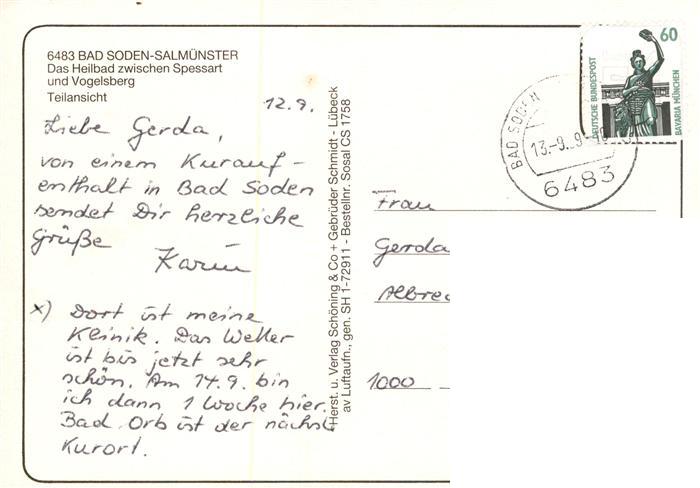 73886558 alte Postkarte Bad Soden-Salmuenster Fliegeraufnahme postalisch gelaufen Erhaltung siehe scans [WerneD78] KatCode: 11110006435002