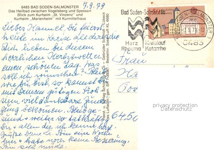 73031405 alte Postkarte Bad Soden-Salmuenster Fliegeraufnahme Kurheim Sankt Vinzenz Marienheim Kurmittelhaus postalisch gelaufen Erhaltung siehe scans [KathaD81] KatCode: 11110006435002
