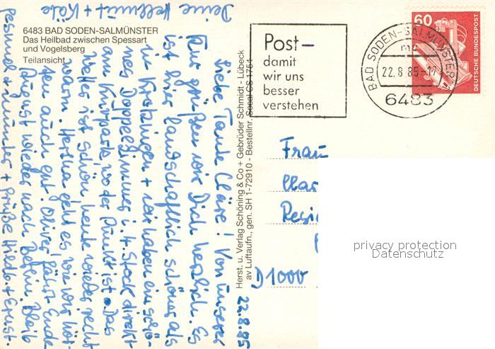73727697 alte Postkarte Bad Soden-Salmuenster Fliegeraufnahme Teilansicht postalisch gelaufen Erhaltung siehe scans [LiesaD40] KatCode: 11110006435002