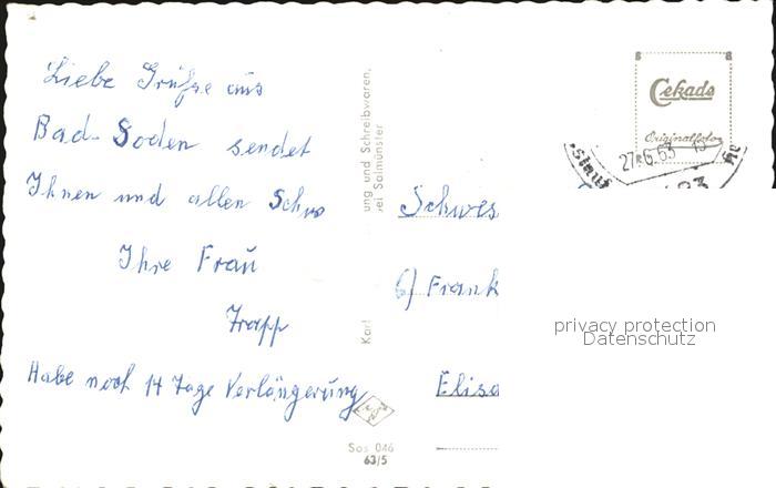 72417176 alte Postkarte Bad Soden-Salmuenster Gesamtansicht postalisch gelaufen Erhaltung siehe scans KatCode: 11110006435002