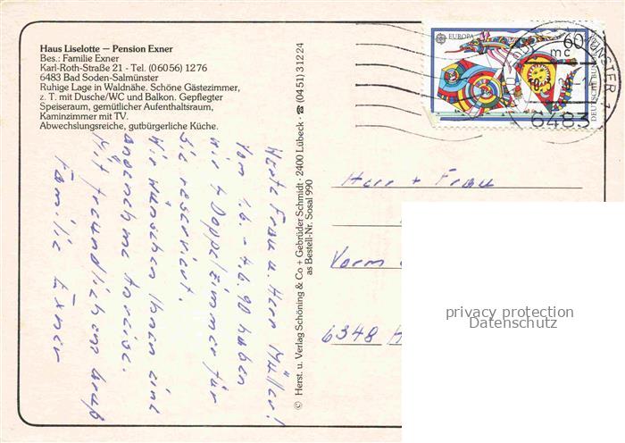 74084691 alte Postkarte Bad Soden-Salmuenster Hessen Haus Liselotte Pension Exner Gastraeume postalisch gelaufen Erhaltung siehe scans [WerneD78] KatCode: 11110006435002