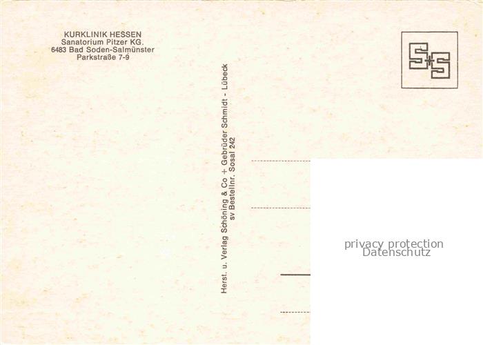 74110408 Bad Soden-Salmuenster Hessen Kurklinik Hessen Sanatorium Pitzer KG postalisch nicht gelaufen Erhaltung siehe scans [WerneD78] KatCode: 11110006435002