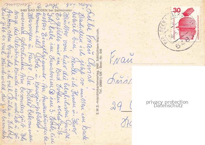 74137676 alte Postkarte Bad Soden-Salmuenster Hessen Panorama postalisch gelaufen Erhaltung siehe scans [WerneD78] KatCode: 11110006435002