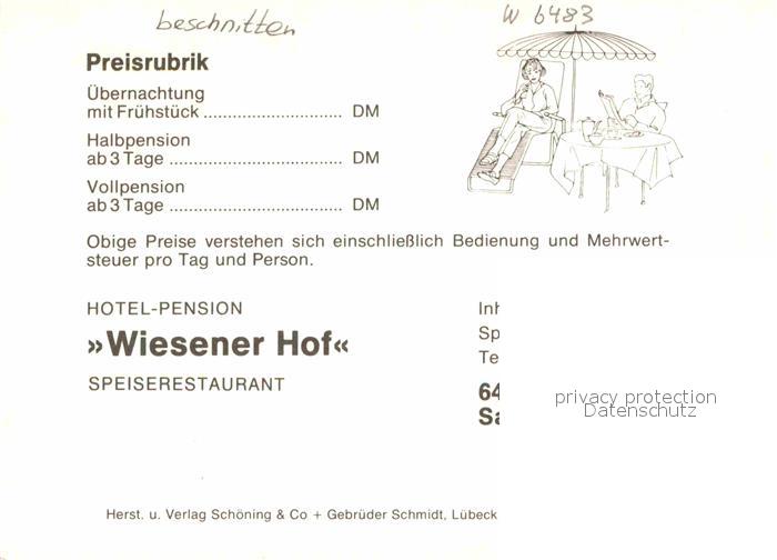 72885189 Bad Soden-Salmuenster Hotel Pension Wiesener Hof postalisch nicht gelaufen Werbekarte (keine Postkarte) Erhaltung siehe scans [WerneD78] KatCode: 11110006435002