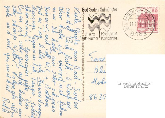 73780098 alte Postkarte Bad Soden-Salmuenster Hotel Regina Cafe Weinstube Kupferkanne Werbung Seeler Pelze postalisch gelaufen Erhaltung siehe scans [FriedD77] KatCode: 11110006435002