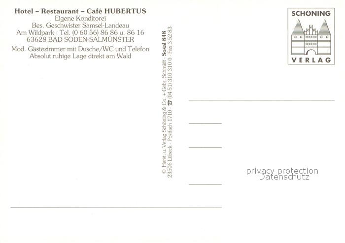 73684217 Bad Soden-Salmuenster Hotel Restaurant Cafe Hubertus postalisch nicht gelaufen Erhaltung siehe scans [LiesaD40] KatCode: 11110006435002