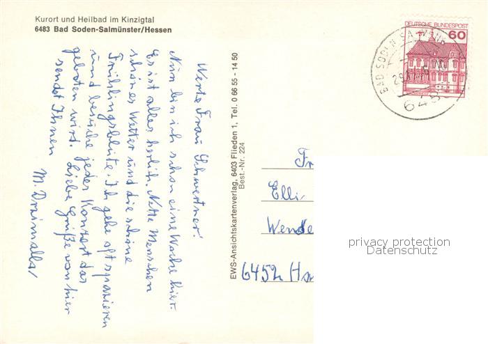 73765949 alte Postkarte Bad Soden-Salmuenster Kuranlagen postalisch gelaufen Erhaltung siehe scans [FriedD77] KatCode: 11110006435002
