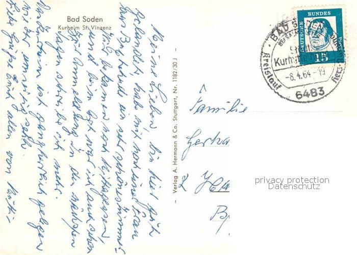 72794809 alte Postkarte Bad Soden-Salmuenster Kurheim St Vinzenz postalisch gelaufen Erhaltung siehe scans [FriedD77] KatCode: 11110006435002