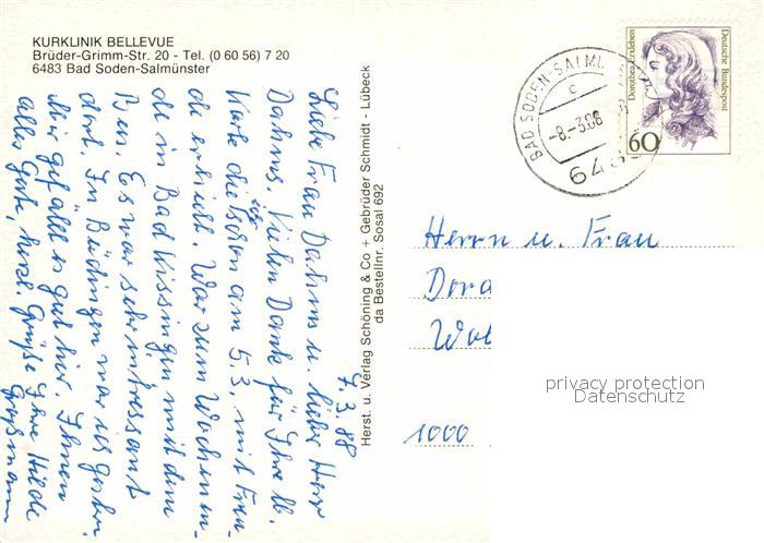 72855069 alte Postkarte Bad Soden-Salmuenster Kurklinik Bellevue postalisch gelaufen Erhaltung siehe scans [AndreD76] KatCode: 11110006435002