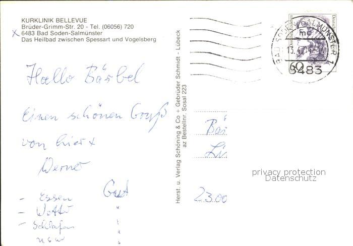 72223320 alte Postkarte Bad Soden-Salmuenster Kurklinik Bellevue postalisch gelaufen Erhaltung siehe scans KatCode: 11110006435002
