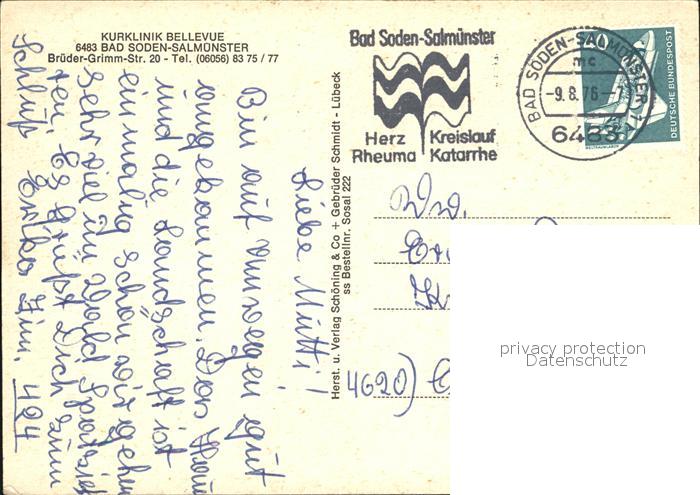 72535112 alte Postkarte Bad Soden-Salmuenster Kurklinik Bellevue Speisesaal Aufenthaltsraum Hallenbad postalisch gelaufen Erhaltung siehe scans [WerneD78 kt117box] KatCode: 11110006435002