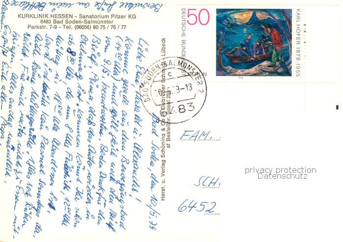 73056831 alte Postkarte Bad Soden-Salmuenster Kurklinik Hessen Gastraeume Hallenbad postalisch gelaufen Erhaltung siehe scans [WerneD78] KatCode: 11110006435002