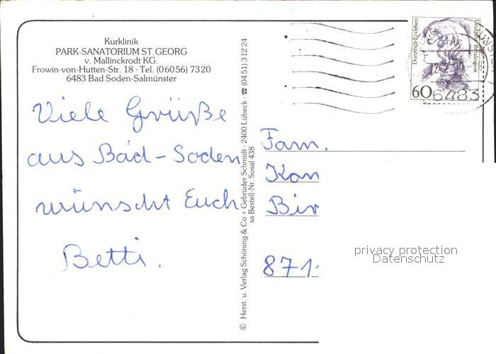 72258099 alte Postkarte Bad Soden-Salmuenster Kurklinik Parksanatorium St. Georg postalisch gelaufen Erhaltung siehe scans KatCode: 11110006435002