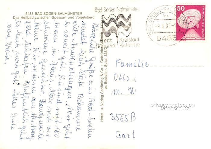 73247044 alte Postkarte Bad Soden-Salmuenster Kurkliniken Gedicht postalisch gelaufen Erhaltung siehe scans [KathaD81] KatCode: 11110006435002