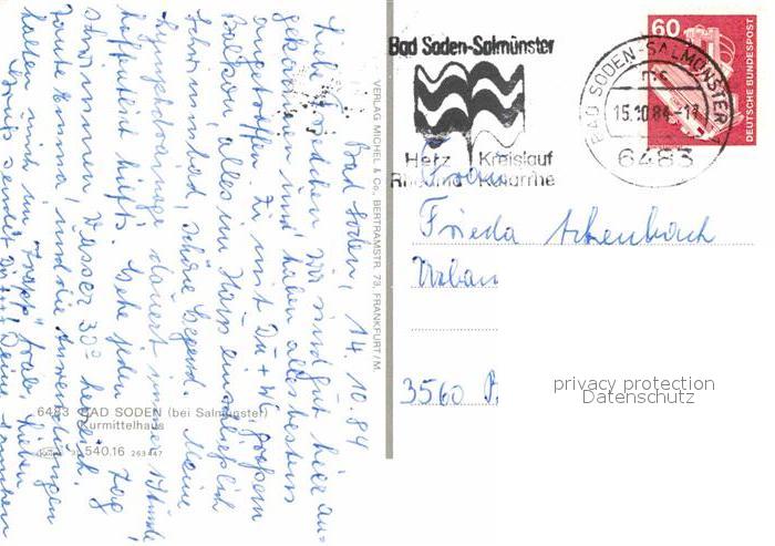 72885020 alte Postkarte Bad Soden-Salmuenster Kurmittelhaus postalisch gelaufen Erhaltung siehe scans [FriedD77] KatCode: 11110006435002