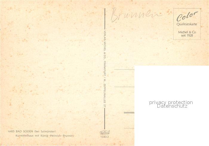 73607787 Bad Soden-Salmuenster Kurmittelhaus mit Koenig Heinrich Brunnen postalisch nicht gelaufen Erhaltung siehe scans [WerneD78] KatCode: 11110006435002
