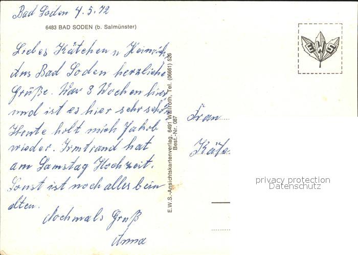 72594645 alte Postkarte Bad Soden-Salmuenster Kurpark Brunnen postalisch gelaufen Erhaltung siehe scans [WerneD78] KatCode: 11110006435002