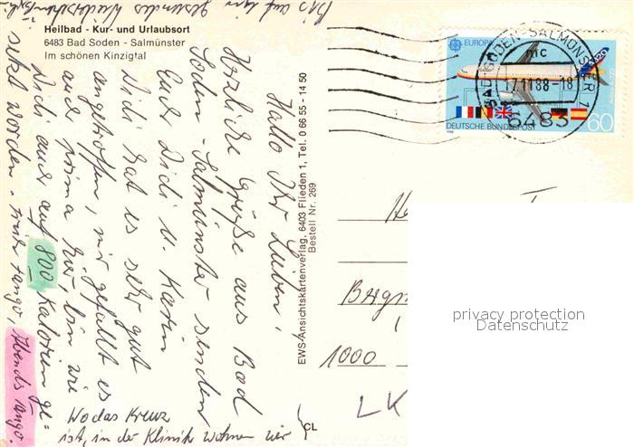 72886619 alte Postkarte Bad Soden-Salmuenster Kurpark Kurhaus Wasserspiele Kurort im Kinzigtal postalisch gelaufen Erhaltung siehe scans [FriedD77] KatCode: 11110006435002